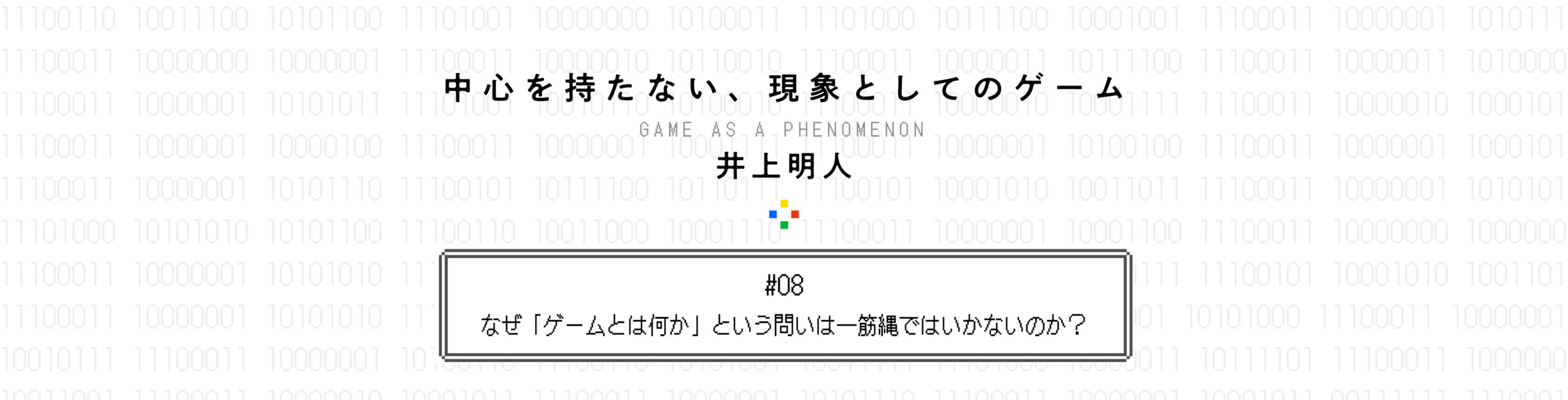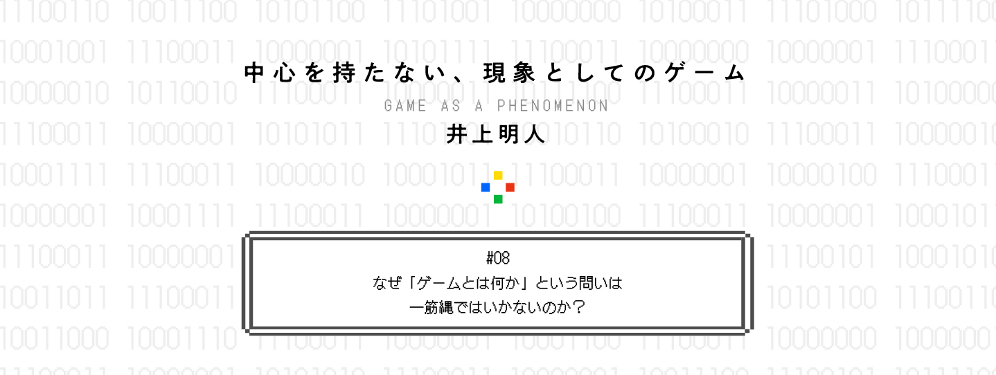記事を読むゲーム研究者の井上明人さんによる連載「中心をもたない、現象としてのゲームについて」。「ゲームや遊びとは何か?」。この問いに答えるべく、ゲームや遊びに関わる多様な現象——ルール、コミュニケーション、非日常など——が興味深いかたちで相互に関係しあっている、その複雑さを論じます。第2部では、これまでの議論を手がかりに「ゲームとは何か」という問いを考える方向性を整理していきます。