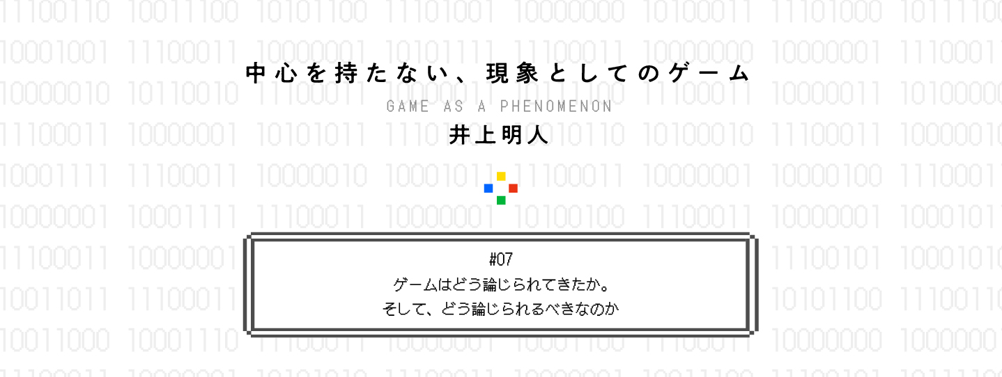 ゲーム研究者の井上明人さんによる連載「中心をもたない、現象としてのゲームについて」。「ゲームや遊びとは何か?」。この問いに答えるべく、ゲームや遊びに関わる多様な現象——ルール、コミュニケーション、非日常など——が興味深いかたちで相互に関係しあっている、その複雑さを論じます。第2部では、これまでの議論を手がかりに「ゲームとは何か」という問いを考える方向性を整理していきます。