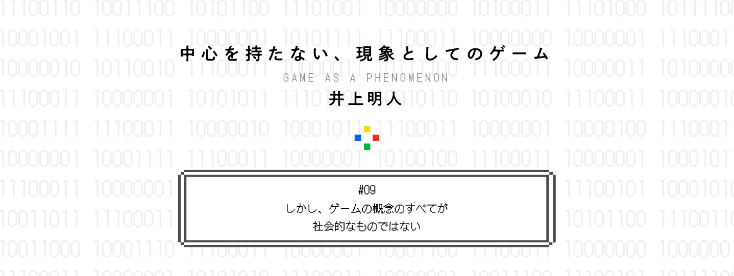 記事を読むゲーム研究者の井上明人さんによる連載「中心をもたない、現象としてのゲームについて」。「ゲームや遊びとは何か?」。この問いに答えるべく、ゲームや遊びに関わる多様な現象——ルール、コミュニケーション、非日常など——が興味深いかたちで相互に関係しあっている、その複雑さを論じます。第2部では、これまでの議論を手がかりに「ゲームとは何か」という問いを考える方向性を整理していきます。