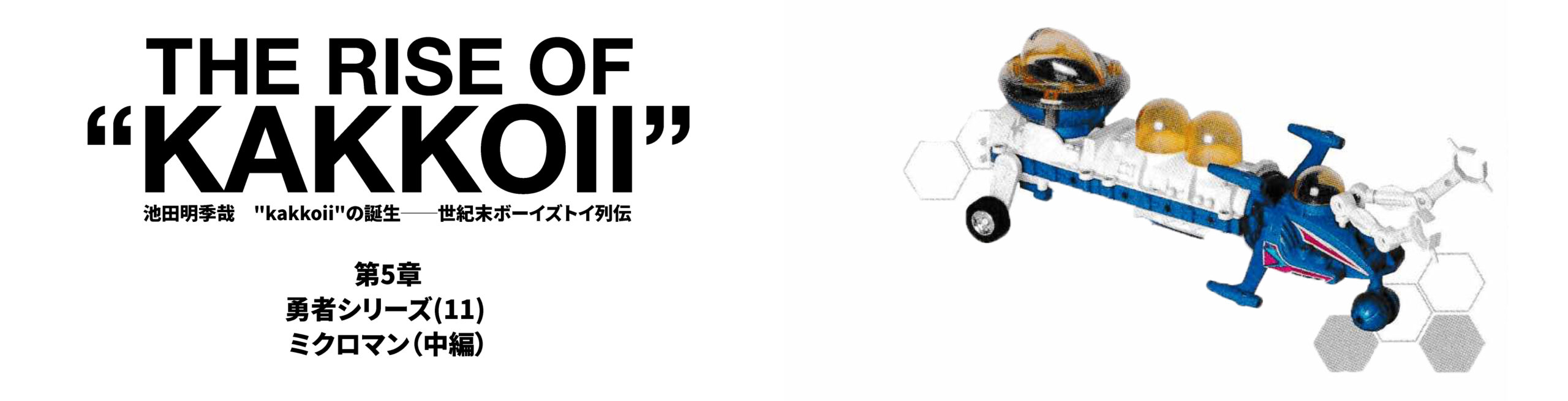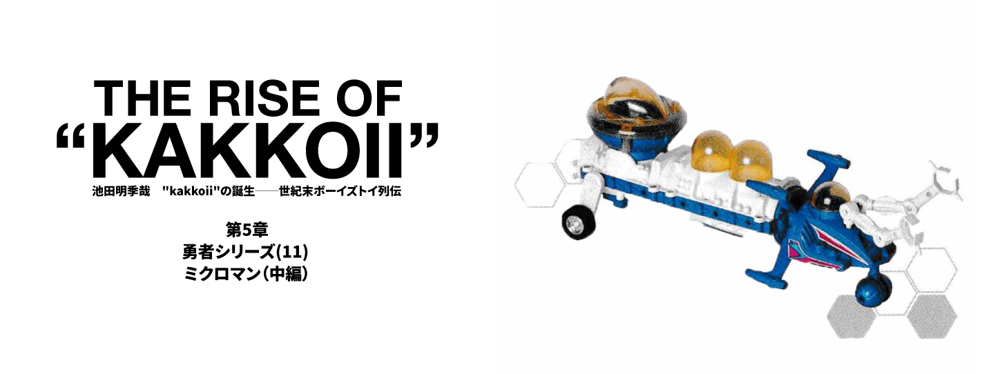 “kakkoii”の誕生――世紀末ボーイズトイ列伝 勇者シリーズ(11)「ミクロマン」中編デザイナー/ライター/小説家の池田明季哉さんによる連載『”kakkoii”の誕生──世紀末ボーイズトイ列伝』。今回は「変身サイボーグ」の後継シリーズ『ミクロマン』を分析します。現実とフィクションを接続する“拡張現実”的な遊びの転換点を、ミクロマンから読み解きます。 記事を読む