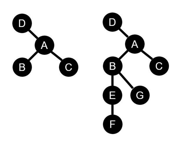 次のような2つのネットワーク図を考えてみよう。それぞれA,B,C,D……とそれらを結ぶ線は先程の層と層の関係のようなものだと考えてほしい。A,B,C,D..は、たとえば、ルールのある活動、マジックサークルの成立、虚構、自由な活動……など適当なゲームの条件のようなものを思い浮かべてもらいたい。