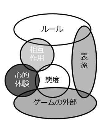 たとえば、「ルール」や「目標」といった要素をゲームの概念の重要な側面として語る議論と、「積極的学習行為」のような高次の複雑性をもった議論とはそのままでは、接続して考えることが難しい。
