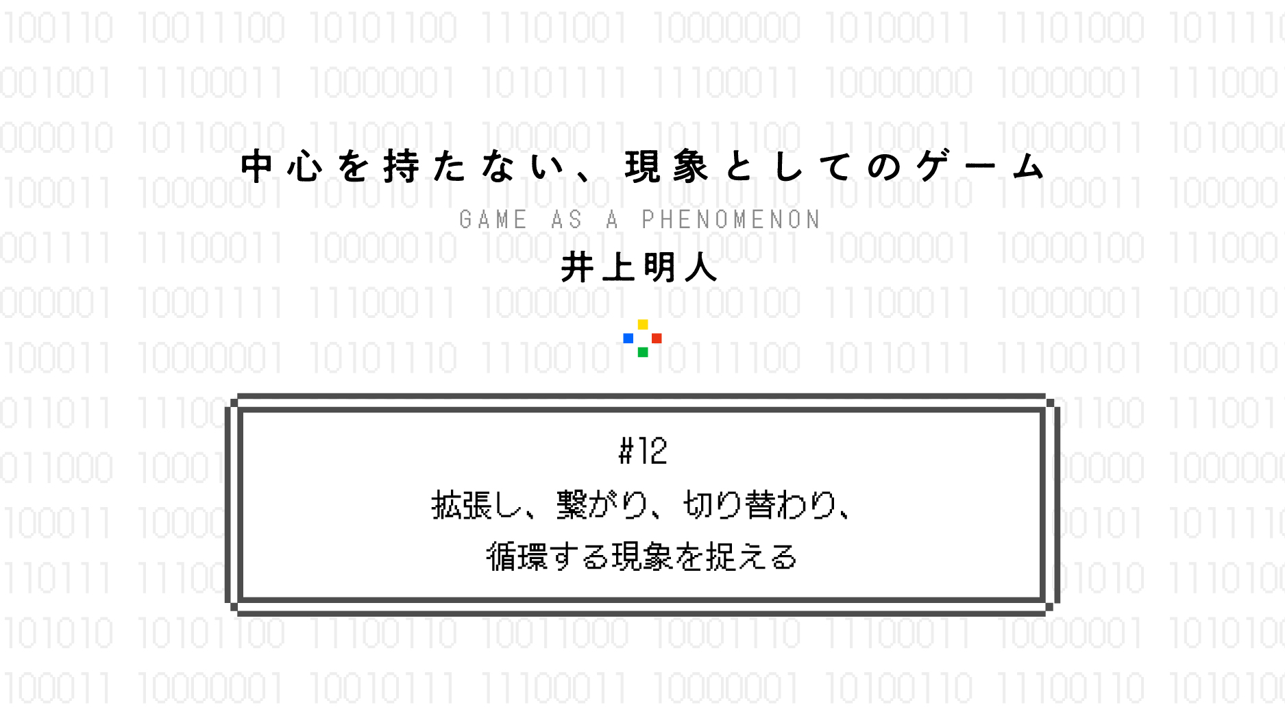 「中心をもたない、現象としてのゲームについて」のこれまでの連載記事は、こちらにまとまっています。よかったら、読んでみてください。