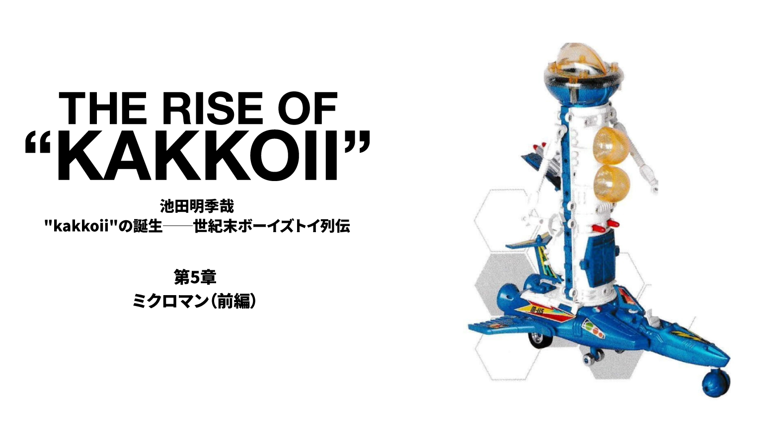 デザイナー/ライター/小説家の池田明季哉さんによる連載『”kakkoii”の誕生──世紀末ボーイズトイ列伝』。今回は「変身サイボーグ」の後継シリーズ『ミクロマン』を分析します。サイズが12インチから3.75インチへと小型化したことで、〈少年=遊び手〉と〈玩具〉の関係がどう変わったのかを考えます。