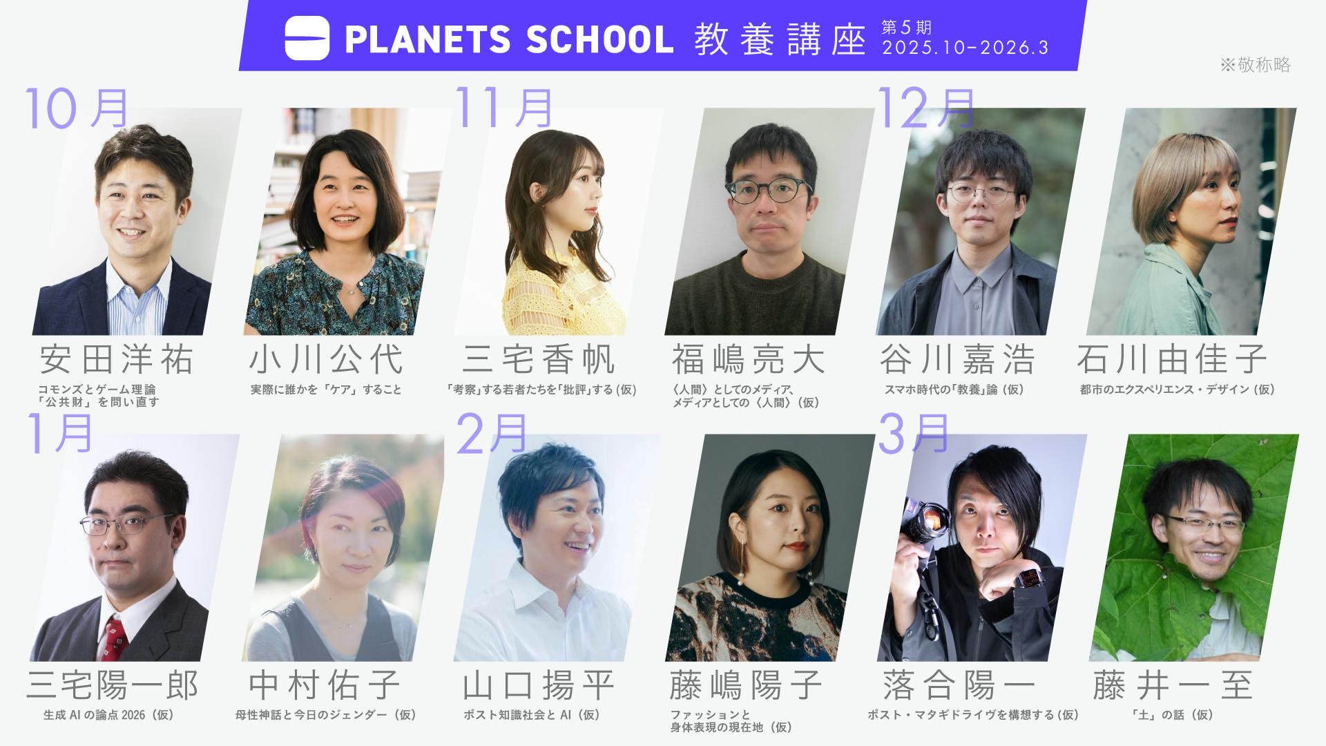 2.2025年10月から3月にかけて「PLANETS School 教養講座」第五期を開催します!